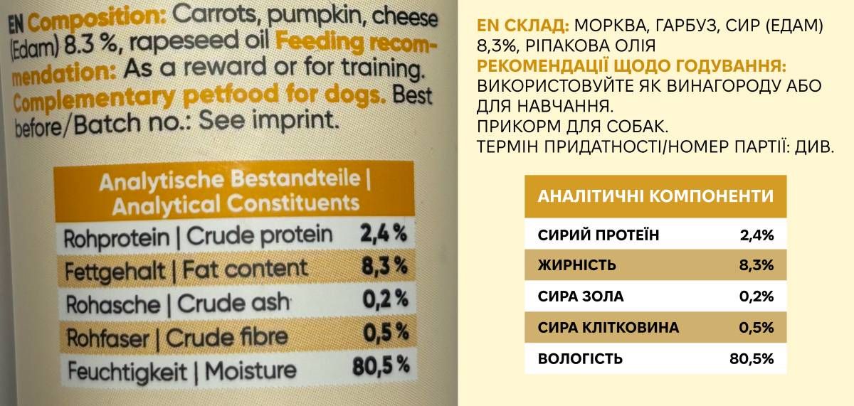 - М’який та смачний крем: Ідеальна консистенція для лизання, особливо приваблива для собак.
