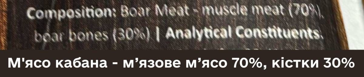 - 100% натуральне м'ясо кабана – без штучних добавок і консервантів.