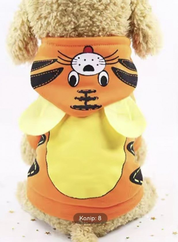 Яскрава толстовка з веселим принтом створить нарядний образ Вашого улюбленця. Зверху толстовка виконана з трикотажу, усередині утеплена байкою.РозмірПородаДовжина спини, смОкружність грудей, смВага тварини, кгXXSЙоркширський терєр, той-терєр, чихуа-хуа, цуценята18-22 см25-31 смдо 1,4XSЙоркширський терєр, той-терєр, чихуа-хуа23-25 см32-40 смдо 2,2SЙоркширський терєр, той-терєр, чихуа-хуа26-29 см40-45 смдо 3S1Йоркширський терєр, пекінес (маленький), безпородні30-33 см40-46 смдо 4,5S2Пінчер, йоркширський терєр, пекінес, цуценята26-29 см46-57 смдо 4,5S3Мопс (маленький), ши-тцу, пекінес30-33 см46-57 смдо 6МТакса міні, чубата собачка, пудель, ши-тцу, фокс-терєр, безпородні33-37 см41-53 смдо 7М1Мопс (середній)31-37 см51-68 смдо 10LТакса (середня), спанієль дрібний38-43 см47-58 смдо 9L1Французький бульдог, мопс великий, спанієль середній38-43 см59-70 смдо 12XL1Боксер, спанієль, стаффордширський терєр50 см50-58 смдо 25XXLСтаффордширський терєр, такса54 см52-63 смдо 35XXL1Стаффордширський терєр50-55 см75-95 смдо 50XXXLРетривер, доберман, лабрадор, вівчарка, ротвейлер56-69 см85-105 смдо 60
