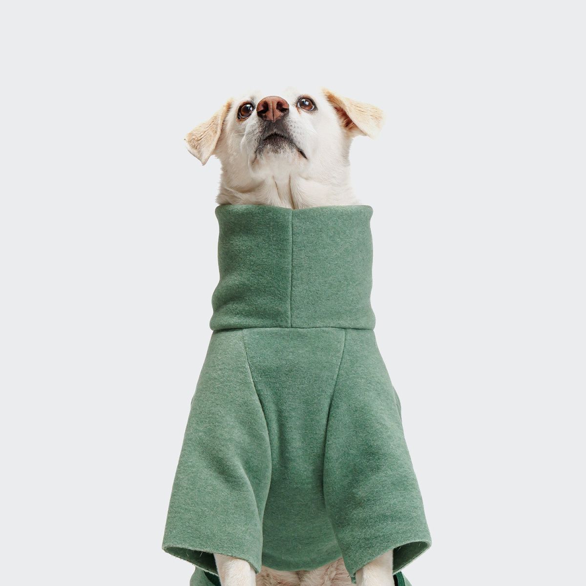 Теплий флісовий джемпер у пилково-зеленому кольорі з повним покриттям лап. М’який та зручний светр із захистом живота підходить для маленьких та великих собак вагою до ≈48 кг.