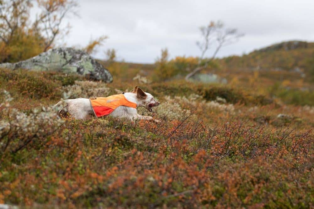 Протектор - це мисливський жилет з міцним ріпстопом. Він має червону пляму з одного боку та жовту з іншого боку, щоб показати, у якому напрямку вказує собака. Насичений помаранчевий світловідбиваючий принт і світловідбиваючі деталі 3M забезпечують високу видимість на місцевості. Ззаду є петелька для кріплення трекінгової волосіні. Щоб жилет завжди тримав форму, вшиті планки.