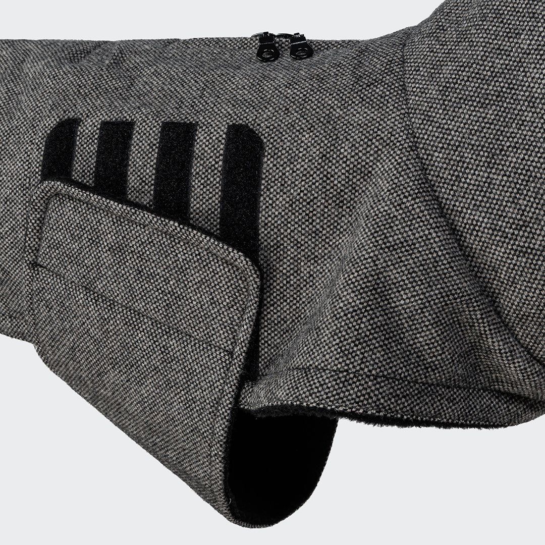 Тепле пальто для французьких бульдогів зі зручним кроєм, м’яким флісовим підкладом та водонепроникною твідовою тканиною з Італії у чорному кольорі.