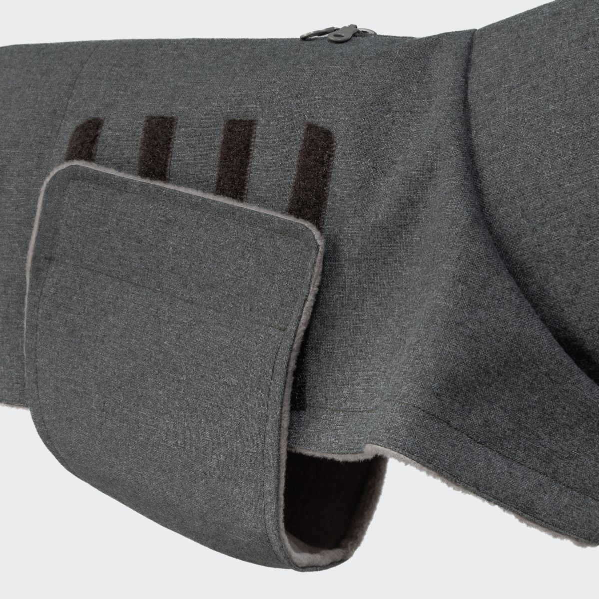 Зимова куртка для собак із комфортною посадкою, теплою флісовою підкладкою та зовнішньою тканиною, що поєднує водонепроникність, легкий догляд і приємний вигляд у природному сіро-коричневому/графітовому меланжі.