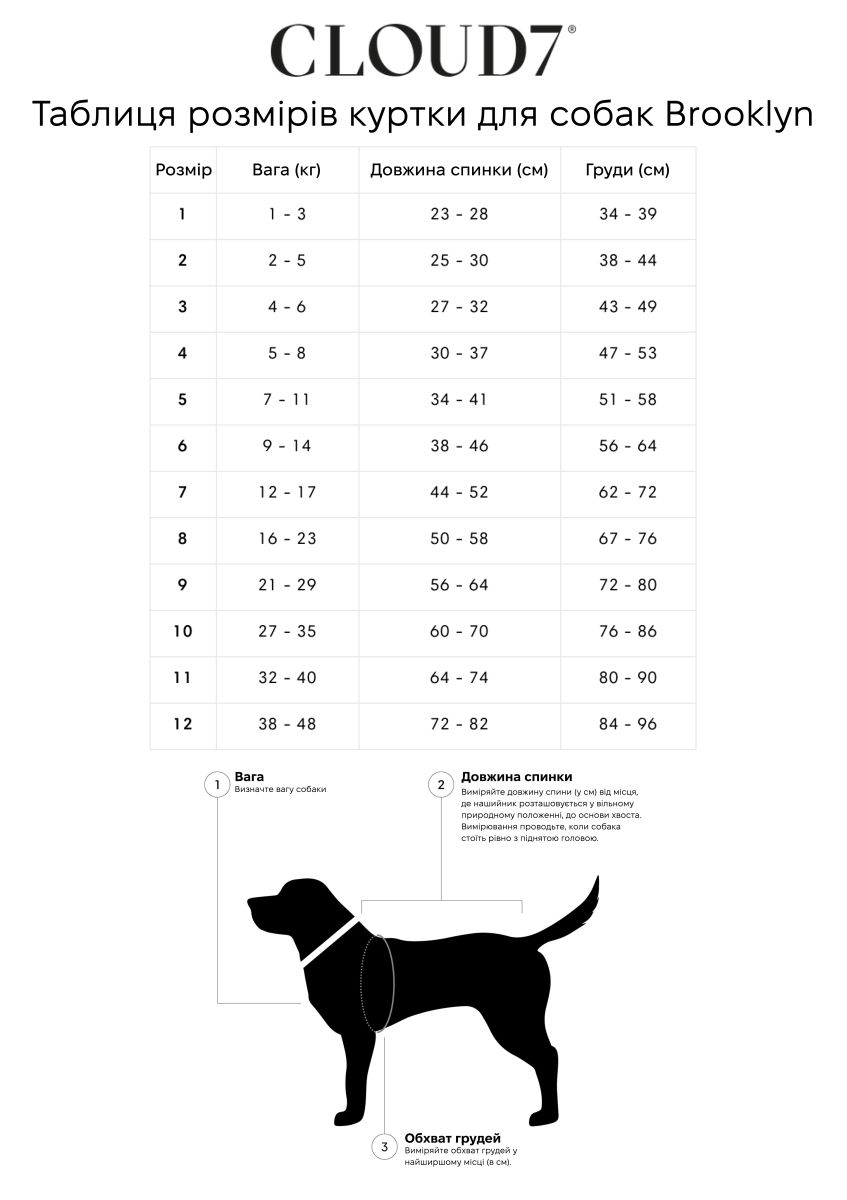 Класична зимова куртка Brooklyn від CLOUD7 доступна у 10 розмірах — для собак від маленьких до великих. Вона забезпечує тепло в області живота, спини та нирок — ідеально для короткошерстих, міських або літніх собак із чутливими суглобами. Еластична стрічка утримує куртку на місці під час активних рухів.