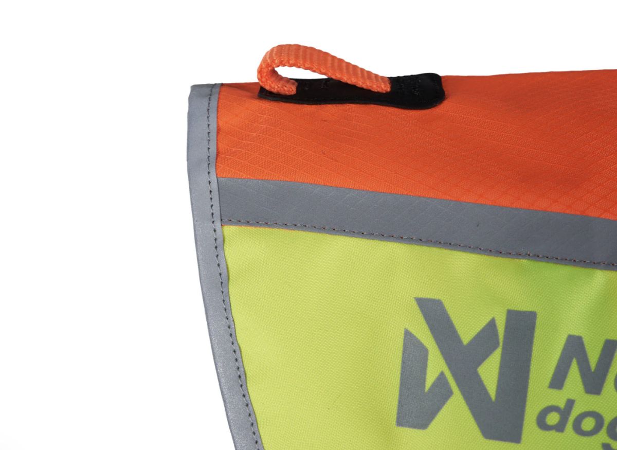 Яскравий помаранчевий колір та світловідбивні елементи 3M™ гарантують чудову видимість собаки за будь-яких умов — у сутінках, у лісі чи на відкритій місцевості. Кольорові бокові вставки (червона та жовта) допомагають швидко визначити напрямок, у якому дивиться собака — особливо зручно під час полювання чи тренувань.
