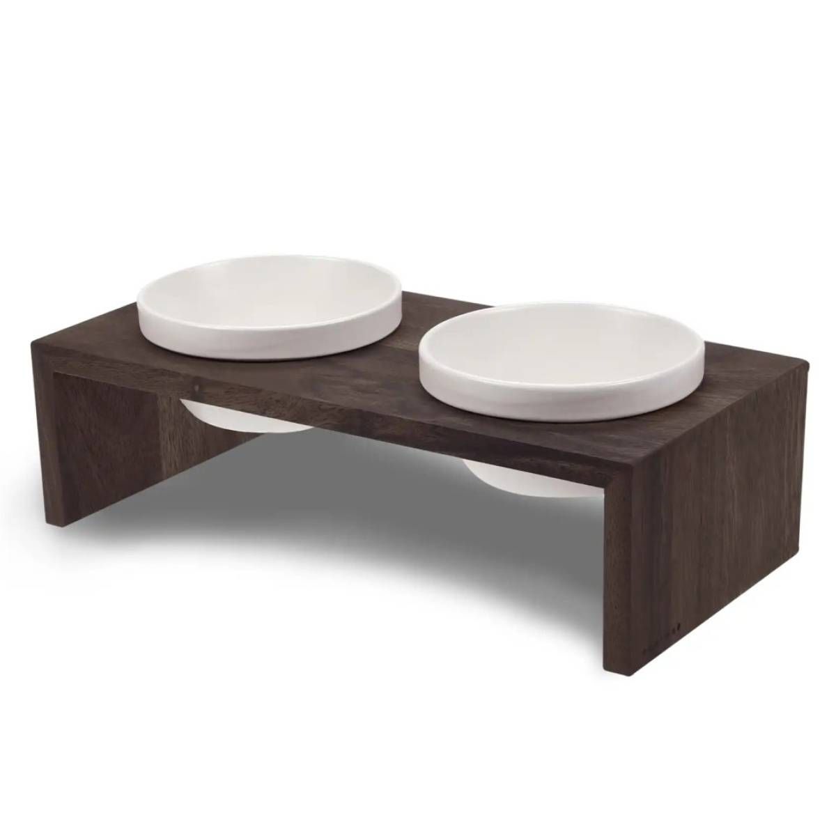Основу виготовлено з відновлюваної натуральної деревини, отриманої з екологічно чистої плантації. Забарвлення виконане з використанням олії, без застосування хімічних барвників, що забезпечує безпеку для тварин та навколишнього середовища. Знімні миски для їжі виконані зі 100% кераміки. Через круглу форму вони особливо підходять для собак із плоскими мордами, таких як мопси або бульдоги.