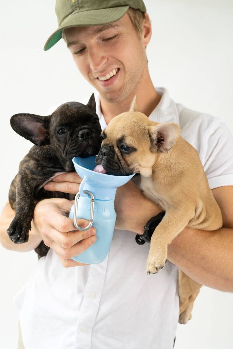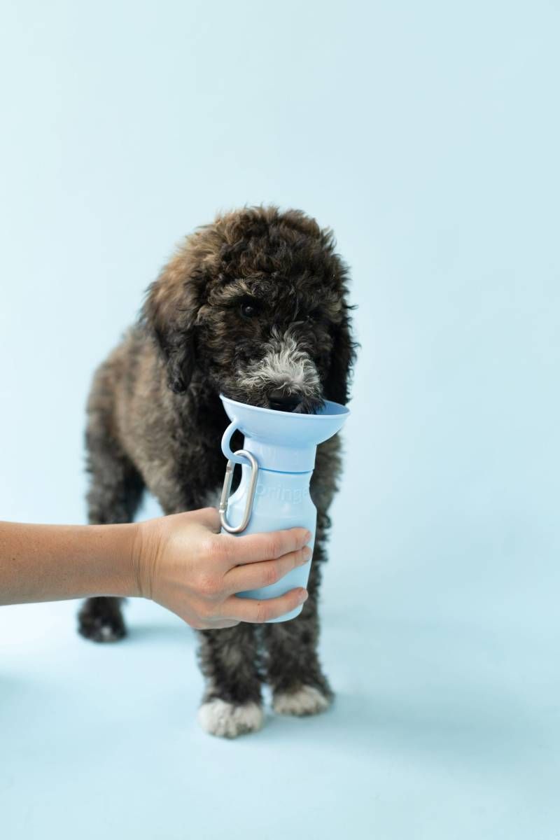 Зручна пляшка з вбудованою поїлкою дозволяє напувати собаку прямо з миски, не проливши жодної краплі. Просто стисніть пляшку однією рукою — вода наповнить миску. Відпустіть — і залишки повернуться назад у пляшку.