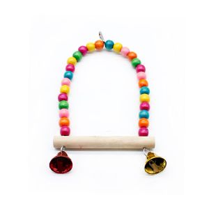 Деревяна іграшка-гойдалка, яка чудово підійде для маленьких і середніх папуг, а також для сов та інших птахів.Універсальна, підвісна, розвиваюча.Іграшка дуже яскрава. Насичена палітра кольорів, а також деревяні вставки на іграшці не залишать байдужим жодного папуги.Папужка зможе лазити по ній і грати навісними елементами.Матеріал:натуральне дерево, харчовий барвник та надійне кріплення.Для розваги папужки в комплекті два металевих дзвіночки.Зручна та практична іграшка.
