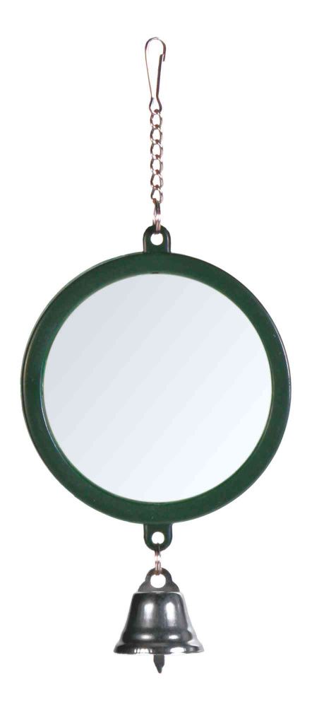 Дзеркало для птахів підвісне Тріксіз пластикової рамкоюз ланцюжком і дзвоникомДіаметр 7см