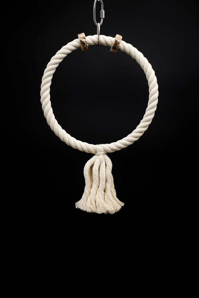 Посилена бавовняна гойдалка для папуг. Підходить для всіх видів папуг, забезпечує комфортне місце для відпочинку та ігор. Міцна конструкція витримує активне використання. Легко кріпиться в клітці за допомогою металевого карабіну. Рекомендується регулярно перевіряти стан гойдалки та замінювати при зношенні.