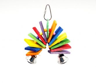 Підвісна іграшка для папуг з деревяними деталями та дзвіночкомЯскрава та цікава іграшка, яка розважить вашого пернатого друга та допоможе йому залишатися активним. Вона складається з різнокольорових деревяних пластин і намистин, а внизу має дзвіночок, що надає інтерактивності та стимулює гру.Переваги:виготовлена із безпечних для птахів матеріалівдопомагає сточувати дзьоб природним шляхомпривертає увагу завдяки яскравим кольорамзручне кріплення-карабін для підвішування у клітціпідходить для хвилястих папуг, нерозлучників, корелів та інших декоративних птахів.