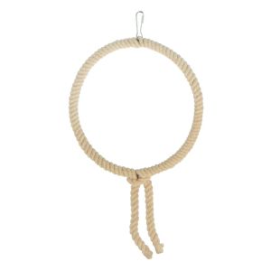 Кільце з мотузки діаметром 10 см - оптимально для ігор і відпочинку хвилястих папуг.Може бути розміщено всередині клітини і за її межами.Підвішується за допомогою металевого гачка, який надійно і рухливо фіксує конструкцію.
