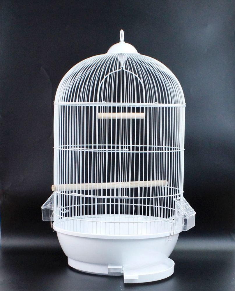 Оснащена ручкою для перенесення. Висувний пластиковий піддон для зручності щоденного догляду за кліткою. У комплект входять гойдалка, жердинка, 2 годівниці підвищеної ємності для сухого і вологого корму. Підходить для утримання хвилястих папуг, корел, розел, канарок, амадин і інших малих і середніх птахів.