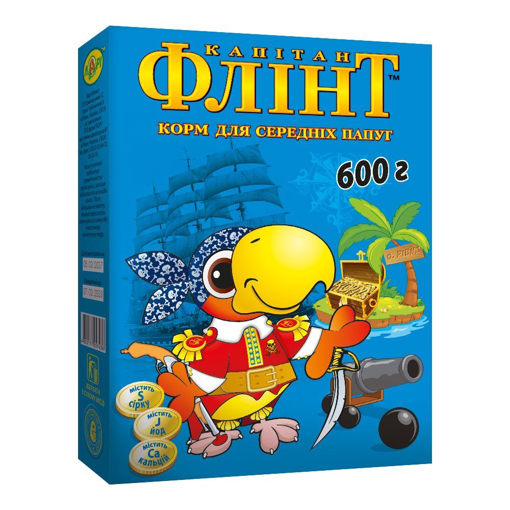 Флінт для середніх папуг - корм, який поєднує в собі високу якість складових і доступну ціну.До складу корму входять: жовте і червоне просо, насіння соняшнику, овес, кукурудза, пшениця, пекарські продукти, а також вітамінний, мінеральний і амінокислотний гранулят. Всі зернові складові компоненти вирощені за безпестицидной технології на півдні України.Біологічно активні добавки, які є у кормі, впливають на поліпшення обміну речовин, самопочуття, а також підвищують тонус. Сульфати задовольняють потребу птахів у такому важливому елементі, як сірка, яка добре впливає на стан шкіри і піря.Вага: 600 г