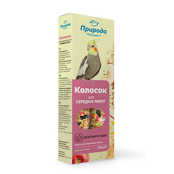 Мультифрукт Сузирье колосок для середніх папуг Колосок Мультифрукт, 140 г для середніх папуг Природа