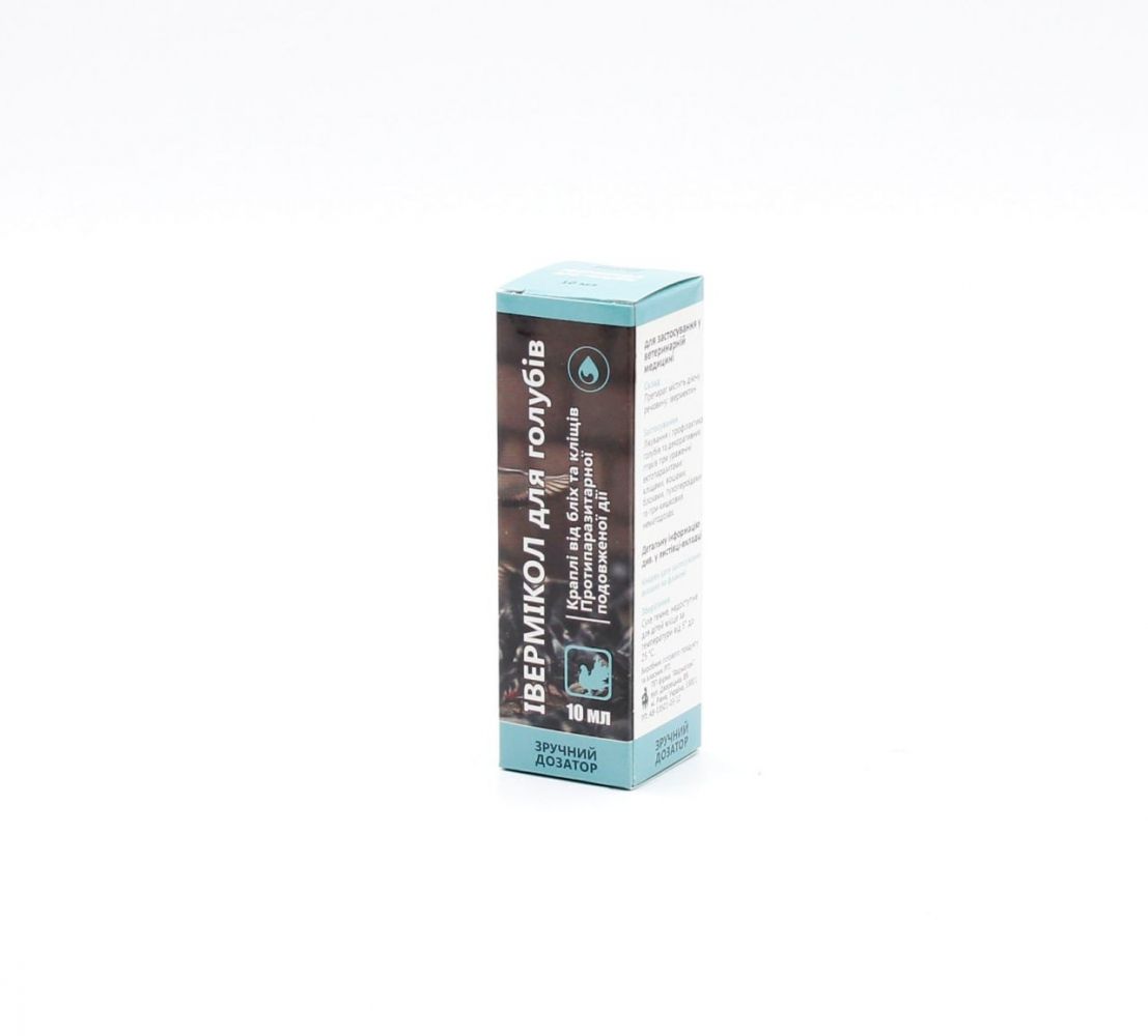 ОписХарактеристикиФайли для завантаження(0)Опис:Прозора рідина голубого кольору із специфічним запахом.Склад:Препарат містить діючу речовину: івермектинФармакологічні властивості:АТСvet QP54AA, авермектини (QP54AA01, івермектин).Препарат має широкий спектр протипаразитарної дії, активний відносно вошей, кліщів, бліх, пухопероїдів та кишкових нематод.Діюча речовина препарату, івермектин, належить до хімічної групи макроциклічних лактонів. Фармакологічна дія івермектину полягає у блокаді нервової або нервово-мязової передачі шляхом впливу на -аміномасляну кислоту (ГАМК), внаслідок чого порушується передача нервових імпульсів ектопаразитів і нематод, що призводить до їх паралічу і загибелі.Дорослі паразити, які паразитують на тілі птиці, після обробки препаратом Івермікол гинуть через 2-3 доби, дія препарату триває до 30 діб.Застосування:Лікування і профілактика голубів та декоративних птахів при ураженні ектопаразитами: кліщами, вошами, блохами, пухопероїдами та при кишкових нематодозах.Дозування:Препарат застосовувати зовнішньо одноразово. Наносити на суху та непошкоджену шкіру між лопатками птиці в наступних кількостях:1 крапля на голуба вагою 250 г2 краплі на голуба вагою 500 г1 крапля для декоративних птахів (папуг, канарок).У разі необхідності, процедуру можна повторити через 4-6 тижнів.Протипоказання:Не застосовувати птахам молодше 8 тижнів або вагою менше 100 г.Не застосовувати під час основного сезону линьки.Не застосовувати хворим та ослабленим птахам.Застереження:Запобігати попаданню препарату на слизові оболонки і в травний канал.При появі клінічних ознак ускладнень після обробки птиці препаратом звернутися до лікаря ветеринарної медицини.Після обробки препаратом птицю не рекомендується купати протягом 2 годин до повного висихання піряного покриву, не можна гладити і допускати її до маленьких дітей.При випадковому попаданні препарату на шкіру або слизові оболонки необхідно відразу промити їх проточною водою.Після закінчення обробки птиці необхідно вимити руки з милом.Форма випуску:Полімерні флакони по 10 мл.Зберiгання:Сухе темне недоступне для дітей місце за температури від 5 до 25 С.Термін придатності:2 роки.
