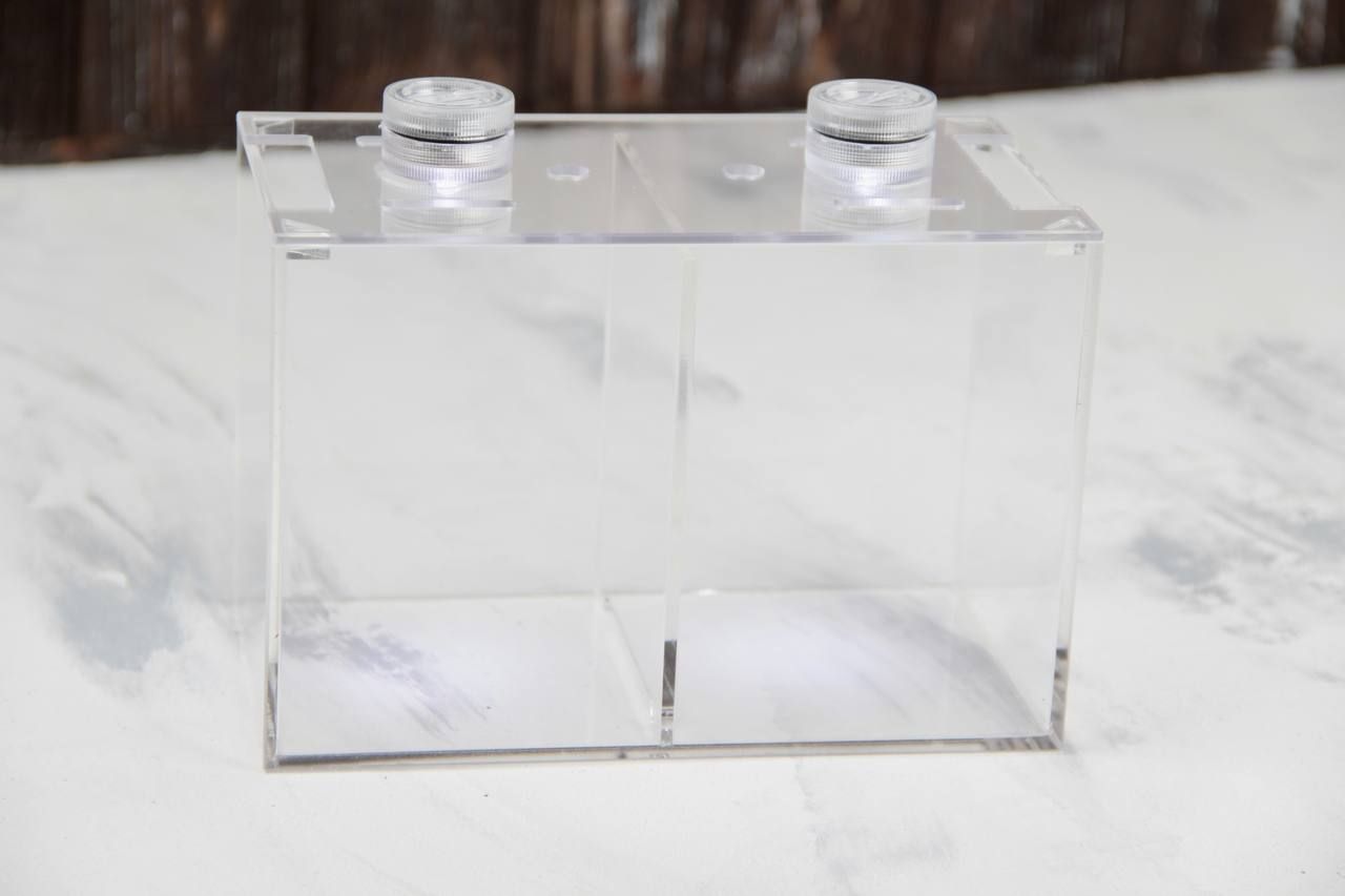 Матеріал акваріума: акрил.Підсвічування на світлодіоді працює від батарейок