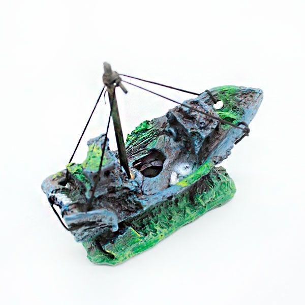 Декорація у вигляді корабля.Ідеально підійде для акваріума.поліефірна смоламатеріал стійкий до дії морської водине впливає на якість води