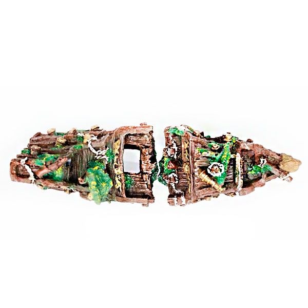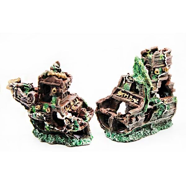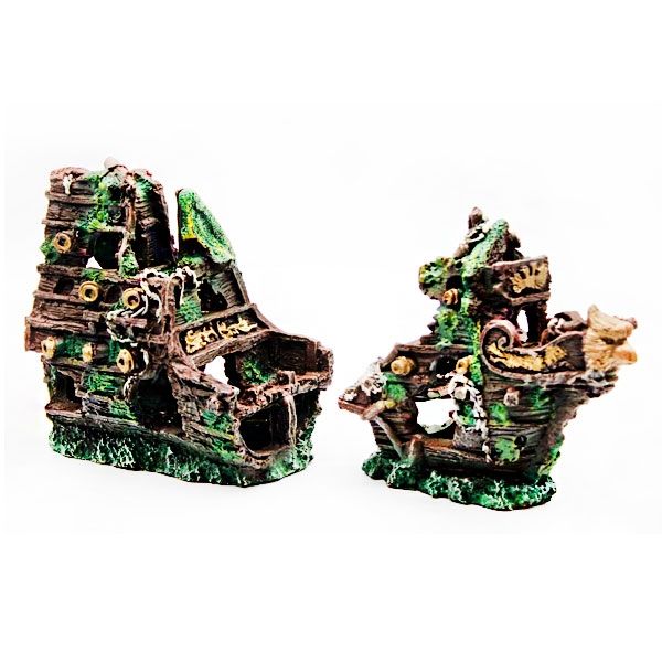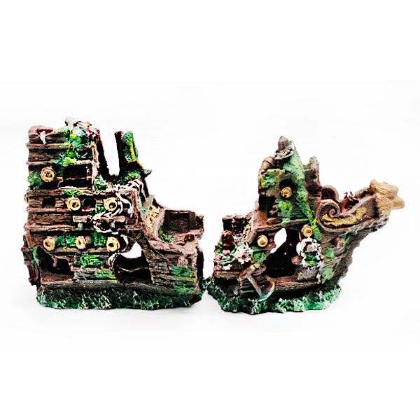 Декорація для акваріума у вигляді затонулого корабля.Складається з двох частин, які можна розмістити у різних кутах акваріуму.поліефірна смоламатеріал стійкий до дії морської водине впливає на якість води