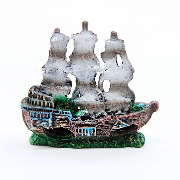 Декорація для акваріума у вигляді затонулого корабля.поліефірна смоламатеріал стійкий до дії морської водине впливає на якість води