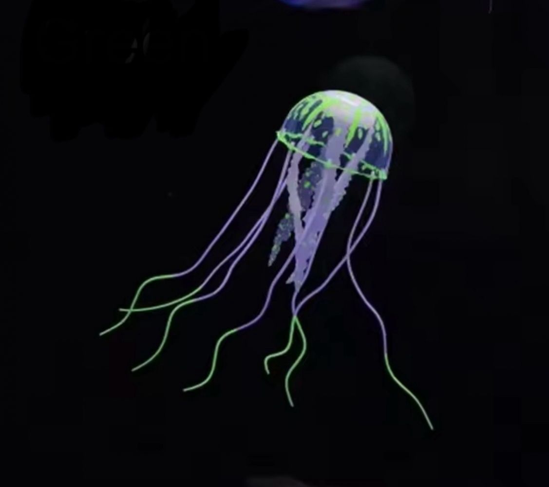 Імітація флуоресцентного декору акваріума з медузами виконана у яскравих кольорах та реалістичних деталях, створюючи ефект рухомого підводного світу, який дарує комфорт та розслаблення. Прикраса виготовлена з високоякісних, нетоксичних та екологічно чистих матеріалів.