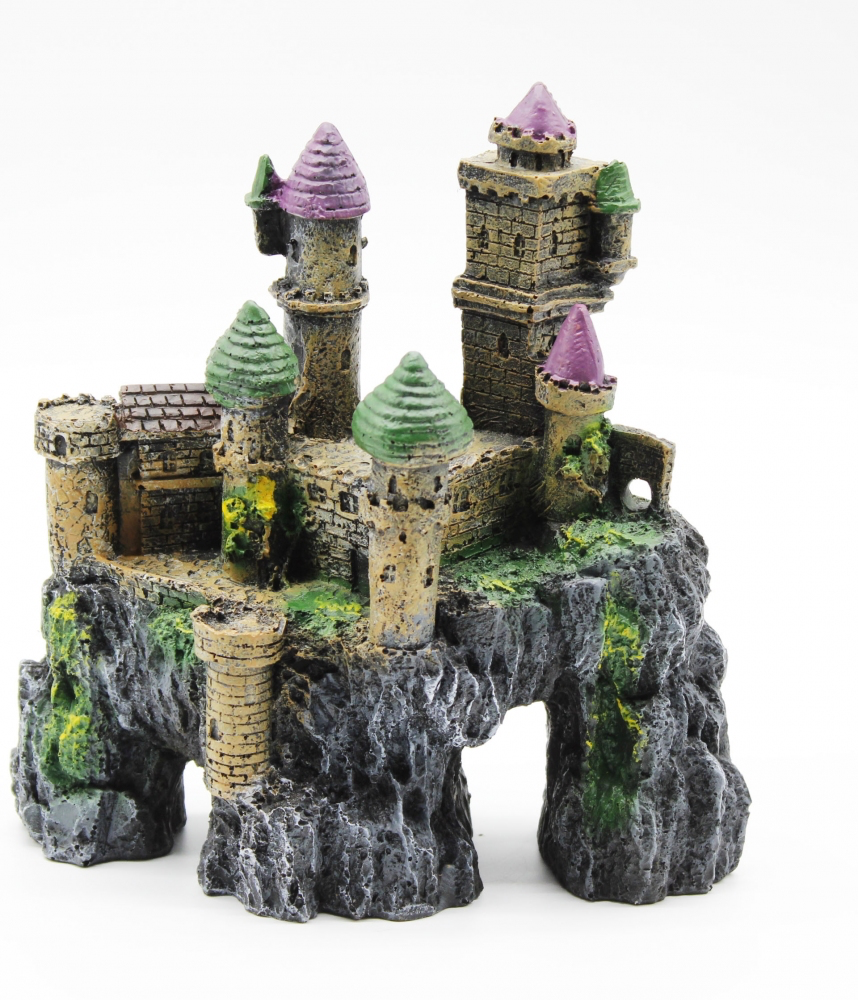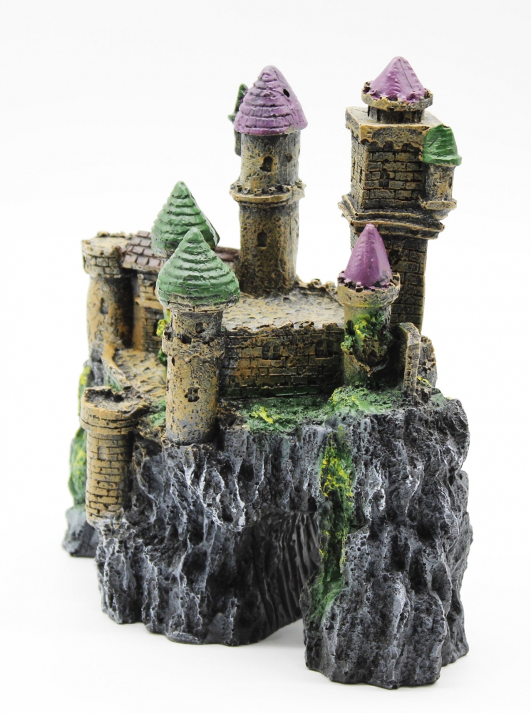 Замок 17819 см декоративна прикраса для акваріумів і тераріумів, виготовлена з високоякісної кераміки. Має вигляд середньовічного замку з реалістичними деталями, що додає акваріуму виразності та створює атмосферу казковості.У нижній частині замку є отвір, схожий на вхід до печери при зануренні декорація самостійно заповнюється водою і не спливає. Кераміка безпечна для водних мешканців, не змінює склад води та легко очищується.