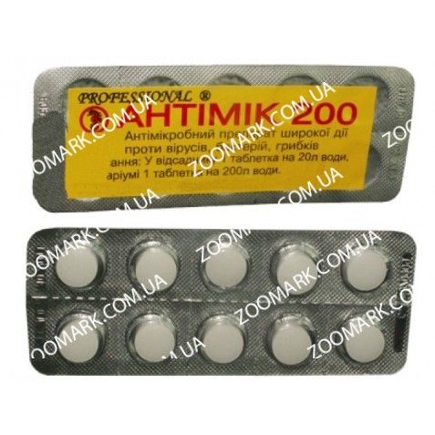 Опис Антимик 200ПрофессионалАнтимик200 протимікробний препарат, що діє на всі види хвороботворних бактерій у риб. Форма випуску: таблетки білого або сірого кольору, призначені для розчинення у воді, масою 0,5 г і містять 250 мг активної речовини ципрофлоксацин.Дія: препарат вільно проникає в клітини організму риби і вбиває хвороботворні мікроби. При цьому він не токсичний і безпечний як для риб, так і длягидробионтови акваріумної рослинності. Побічних явищ при примененииАнтимик200 виявлено не було.В яких випадках застосовується: цей препарат застосовується при таких захворюваннях мешканців акваріума: плавниковая і зяброва гнильмиксобактериоз,коринобактериоз,аеромоноз,стрептококкоз,лепидортоз,псевдомоноз,цитробактериоз,фурункулез,гемофилез,вибриоз,цитофагоз, а також вірусних та грибкових інфекцій у риб.Інструкція по застосуванню:Антимик200 володіє високою ефективністю і його можна застосовувати як у морських, так і прісноводних акваріумах. Лікування риб не обовязково проводити вотсаднике, допускається використання препарату безпосередньо в акваріумі. У період лікування температуру води в акваріумі необхідно трохи підвищити, не варто використовувати біофільтри і освітлення, воду потрібно регулярно аерувати. Після проведення лікування не потрібно додатково знезаражувати акваріум та інвентар.Щоб приготувати розчин, необхідно 1 таблетку подрібнити, змішати зі склянкою води і внести отриманий розчин вотсадникили акваріум. При лечении риб в аквариуме объмом до 200 л, будет достаточно одной таблетки, сверх данного объма на каждие дополнительние 200 литров добавляют ещ по таблетке. Дозировка для лечения вотсадникедругая: 1 таблетка на 20 литров. При продолжительности лечения свише 5 дней, дозу уменьшают в два раза, и одну таблетку используют уже на 400 литров. Виздоровление наступает обично после 5-15 дней применения препарата. По закінченні лікування акваріумну воду необхідно замінити і внести бактеріальний препарат.Застосування препарату для профілактики: при заселенні риб в акваріум або переїзді препарат застосовується один раз у звичайній дозуванні (експозиція повинна становити не менше трх годин). Даний препарат можна купити в нашому інтернет-магазині.