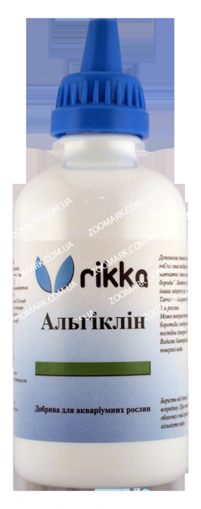 Описанние АльгиклинаУ прісноводних акваріумах часто зявляються небажані водорості:бурісиньо-зеленізеленіниткоподібні та ін.Причиною спалаху розмноження, наприклад, синьо-зелених водоростей, стає надмірна кількість органіки у воді (при зайвому годівлі риб, рідкісної прибирання або розкладання когось із великих мешканців акваріума). Положення посилюється нестачею кисню у воді, а також підвищеною температурою. Червоні водорості, або родофити, зявляються в результаті сильної забрудненості акваріума, але зустрічаються рідко.Бурі водорості (діатомеї) заводяться від малої освітленості або неправильного світла (без синього і червоного складового).Для боротьби з подібними паразитами застосовують препарат Альгиклин rikka. Засіб активно знищує тільки клітини небажаних водоростей, абсолютно не надаючи негативного впливу на акваріумні рослини і риб. Цей засіб працює обережно і поступово.Очищая воду до полной прозрачности, Альгиклин виделяет в окружающую среду углекислоту (СО2) в больших количествах, что прекрасно сказивается на росте и развитии полезних водорослей. Многими аквариумистами препарат часто используется, как искусственний источник дополнительного углекислого газа.Способ примененияАльгиклинвипускается в бутилочках с дозатором. Рекомендовано инструкцией добавлять 10 мл (10 нажатий дозатора) на 100 л води в аквариуме в месте, где идет активное движение води (возле насоса). Через сутки применение повторить по мере необходимости.Якщо Альгиклин використовується не проти водоростей, а в якості джерела додаткової вуглекислоти, то в воду додають щодня по 3 мл на 100 л. Максимально можливо перевищувати дозування в три рази.Препарат можна купити в розфасовці 100 мл, 250 млВиробництво: Rikka Україна. Термін придатності 2 роки.