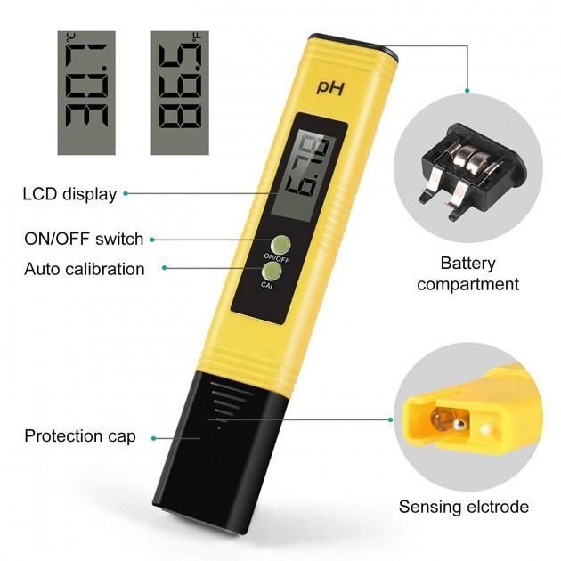 pH-метр - для вимірювання кислотності води. Можна використовувати як для акваріумної води, так і для побутових потреб (поміряти кислотність водопровідної, питної води) або технічних рідин.В набір входить сам прилад, три калібрувальних розчину і пластикова коробка для зберігання.Діапазон вимірювання 0.01 - 14.00 з кроком 0.01 Харчування - 2 х 1,5 V (AG13) в комплектеРазмер: 155 х 30 х 20 ммвага: 51 грПогрешность - 2