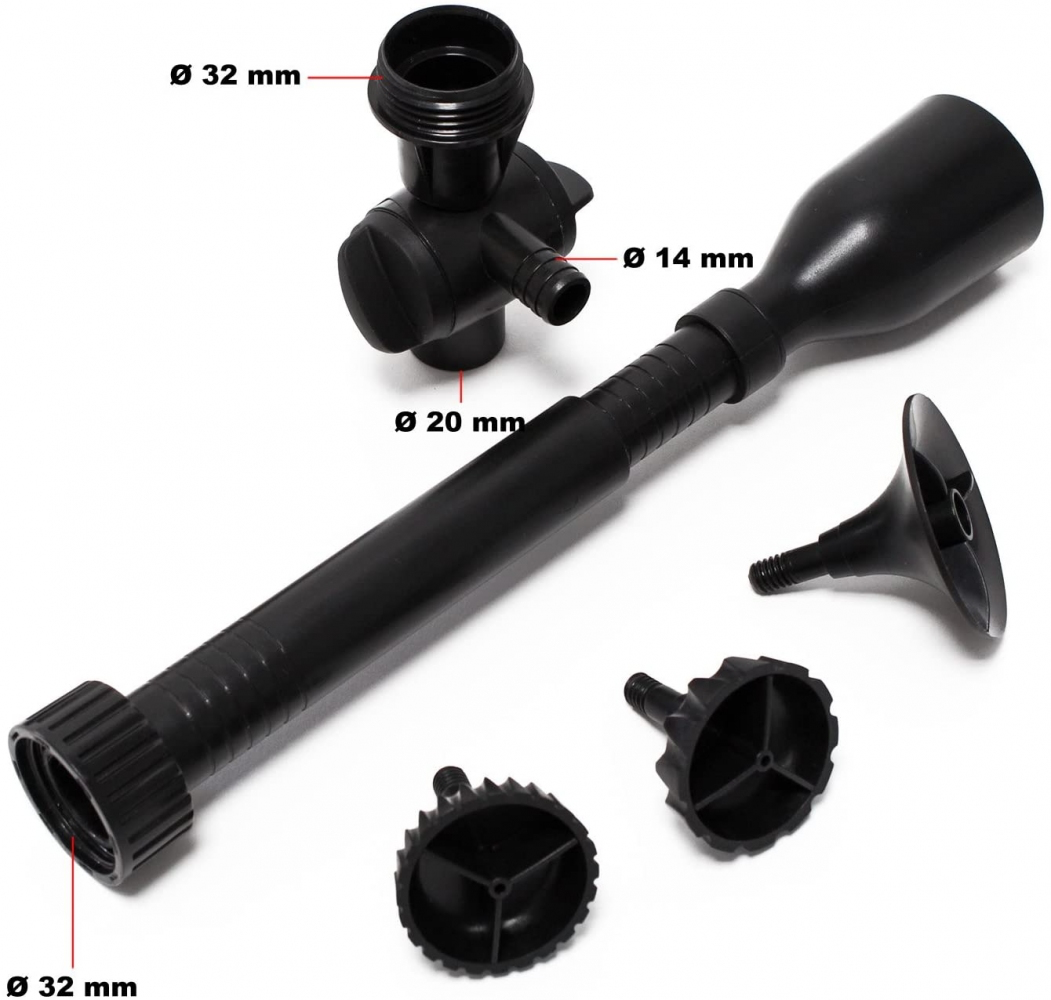 Набір насадок для фонтану Sunsun CFA 13За допомогою комплекту Sunsun CFA 13, ставковий насос можна легко перетворити на фонтанний.У комплект входить:трійник для підключення фонтанучотири фонтанні насадкителескопічна трубка для фонтанупробка заглушкаТакож до трійника додається фітинг для підключення шланга. Фітинг має три різні діаметри (142025мм).Телескопічна висувна трубка (до 43 см) дозволяє встановити насос на дно водойми і підняти фонтан над водою, без додаткових підставок під насосом.На трійнику є ручка регулювання потоку водиПідходить для насосів Sunsun продуктивністю від 500 до 3000 лгод.