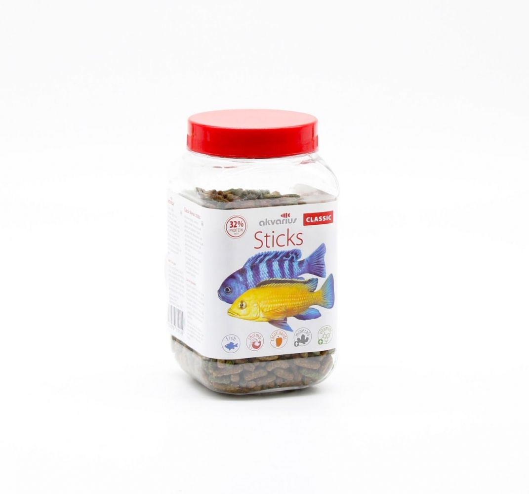 Корм CLASSIC MENU, sticks (Класичне меню, палички) Базовий раціон для годівлі великих акваріумних риб, що воліють годуватися біля поверхні води - цихлід, дорослих гурамі, макроподів та інших риб з довжиною тіла більше 10 см. Ретельно збалансований за вмістом поживних речовин, вітамінів і мінералів, корм забезпечує повноцінне годування риб протягом усього життя не вимагає доповнення раціону іншими. Корм має чудові смакові якості, чудово поїдається рибами.Спеціальні методи переробки сировини забезпечують повне знешкодження бактерій, вірусів та паразитів, які спричиняють небезпечні хвороби акваріумних риб. Якість та безпека корму перевіряються державною лабораторією та підтверджені сертифікатом.Потрапляючи у воду, палички корму швидко набухають, залишаючись на поверхні, не розпадаються і не забруднюють воду.Зміст:білка не менше 21,жиру 5,клітковини не більше 10.Застосування:годувати рибок слід 1-2 рази на добу (норма для дорослої риби 2-5 від маси тіла). Якщо риба не зїла весь запропонований корм протягом 5-10 хвилин, його залишки слід витягти з акваріума, а наступного разу зменшити його кількість. При правильному застосуванні CLASSIC MENU не забруднює воду.Примітка:Чи не перегодовувати Деякі види акваріумних риб мають схильність до переїдання, що може призвести до хвороби і навіть загибелі риби. Крім того, будь-який корм, який залишається тривалий час не зїденим, створює умови для зростання шкідливих бактерій в акваріумному середовищі.Фасування: корм продається розфасованим у полімерні пакети по 40 і 10 г, та банки обємом 600 см та вагою 150 г.ТУ У 15.7-2284014277-001-2005 Термін придатності 12 місяців. Серія та дата виготовлення вказані на упаковці Зберігати у сухому прохолодному місці при температурі від 0С до +30С та відносній вологості не вище 75