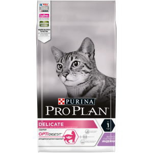Для дорослих кішок з чутливою системою травлення або вибагливих у їжі. PRO PLAN Delicate збалансований корм для кішок, який поєднує всі основні поживні речовини, включаючи вітаміни і мінерали.Містить формулу OPTIDIGEST, сприяє підтримці здоровя травної системи завдяки пребіотиків. У лінійці кормів PRO PLAN DELICATE використовуються добірні джерела білка, що допомагає підвищити харчову толерантність і знижує ймовірність алергічної реакції на їжу у кішок будь-якого віку. Рецептура корми володіє високою смаковою привабливістю і припаде до смаку навіть самим вибагливим кішкам.Рекомендації по годівлі, що дозволяють підтримувати ідеальну форму можуть змінюватись в залежності від віку тварини, її активності та умов навколишнього середовища. Слідкуйте за вагою Вашої кішки і коректуйте кількість дається корму. Слідкуйте, щоб у Вашої кішки завжди була чиста, свіжа питна вода. Для здоровя Вашої кішки регулярно консультуйтеся з ветеринарним лікарем.Склад: індичка (18), кукурудзяний глютен рис, сухий білок індички, концентрат білка гороху, тваринний жир, соєвий білок, кукурудзяний крохмаль, яєчний порошок, кукурудза, висушений корінь цикорію (2), мінеральні речовини, рибячий жир, вкусоароматическая кормова добавка, дріжджі, амінокислоти, консерванти, вітаміни, . Джерела білка Натуральний пребіотик антиоксиданти.Мікроелементи: МОкг вітамін А: 35 000 вітамін Д3: 1 100 вітамін E: 670 мгкг: вітамін C: 140 залізо: 100 йод: 2.6 мідь: 15 марганець: 47 цинк: 160 селен: 0.14.Гарантовані показники: білок: 40, вміст жиру: 18, сира зола: 7.5, сира клітковина: 1.5Умови зберігання: У сухому прохолодному місці