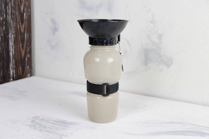 Дорожня поїлка Pet Bottle 500 мл, з тарілкою сіра