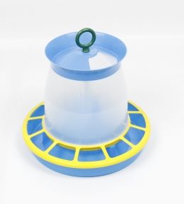 Годівниця для домашніх птахів. Виріб виконаний із якісного харчового пластику. Корм засипається через віконце у верхній частині годівниці, далі він рівномірно розподіляється на піддон. Піддон розділений на секції для того, щоб у кожного птаха під час їди було своє обіднє місце. Годівницю можна підвісити на зручну для Вас або птаха висоту завдяки наявності гачка.Годівниця легко миється і не потребує спеціального догляду.