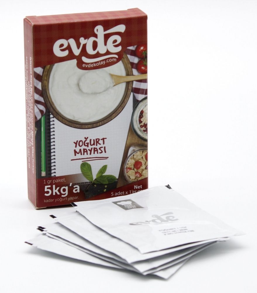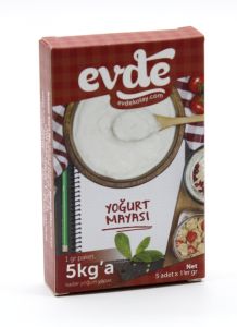 Інгредієнти:Йогуртові дріжджі (отримані висушуванням натурального йогурту.)Приготування (Інформація про ферментацію):Кипятіть молоко, з якого готуватимете йогурт, 10-15 хвилин.Щоб активізувати йогуртові дріжджі, спочатку додайте половину чайної склянки до 45 C теплого молока і розтопіть ложкою, потім додайте йогуртові дріжджі, активовані в молоці (при 45 C, що є температурою бродіння) і знову перемішайте ложкою. підтримуючи ту ж температуру протягом 5-6 годин.Після завершення періоду бродіння потримайте йогурт у холодильнику протягом 1 дня, а потім його вживайте.Важливо:після відкриття упаковки йогурт рекомендується зберігати в холодильнику.