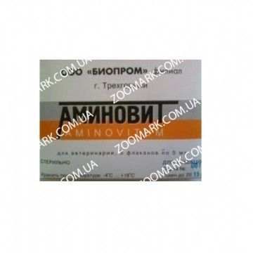 Опис Аминовит амінокислотно-вітамінний препаратАминовит ветеринарний комплексний препарат, що містить велику групу амінокислот і вітамінів. Збалансований склад рекомендованої дозуванні успішно заповнює дефіцит основних корисних речовин. Препарат підвищує опірність організму, нормалізує водно-електролітний баланс, метаболічний та енергетичний обмін. Аминовит сприяє зміцненню імунітету, регуляції гомеостазу. Компоненти кошти покращують зовнішні показники тварини, збільшуючи прирости, стимулюючи розвиток мускулатури і волосяного покриву.Препарат призначається при отруєннях, лікуванні інфекційних захворювань, для підвищення резистентності, профілактики порушень метаболізму, поповнення білків і вітамінів.Враховуючи універсальне і широке застосування, Аминовит купити для зберігання і подальшого використання рекомендується всім власникам тварин.