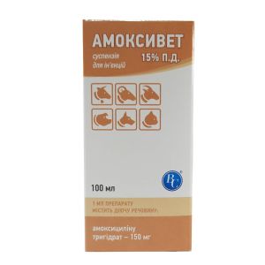 Амоксівет 15 П. Д - інєкційний антибактеріальний препарат 100 мл