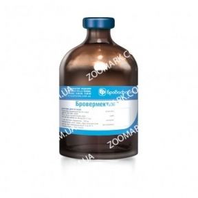 Прозора, безбарвна або злегка жовтувата вязка рідина, без механічних включень, зі слабким специфічним запахом.Склад1 мл препарату містить:діюча речовина івермектин 10,0 мгФармакологічні властивостіІвермектин належить до хімічної групи макроциклічних лактонів. Фармакологічна дія препарату полягає у блокуванні нервових імпульсів між интернейронами і руховими збудливими нейронами черевного стовбура паразитів, що призводить до їх паралічу і загибелі.ЗастосуванняЛікування і профілактика великої рогатої худоби, овець, кіз, свиней, коней, собак, кролів, птиці (курей, індиків, голубів, папуг, перепілок, фазанів) при ураженні:у великої рогатої худоби: нематодами шлунково-кишкового тракту (дорослими і личинками 4-ї стадії): Nematodirus helvetianus Ostertagia ostertagi О. lyrata Bunostomum trigonocephalum B. phlebotomum, Haemonchus placei (включаючи личинок 3-ї стадії) Trichostrongylus ахеi T. colubriformis Cooperia pectinata C. punctata легеневими гельмінтами: Dictyocaulus viviparus(дорослими і личинками 4-ї стадії) порожнинними гельмінтами: Setaria labiato-papillosa (в стадії микросетарий) шкірними гельмінтами: Paraphilaria bovicola (статевозрілими) личинками підшкірного овода (I і II стадії): Hypoderma bovis, H. lineatum коростяним кліщем: Psoroptes bovis Sarcoptes bovis, Chorioptes bovis кліщами: Demodex bovis волосоїдів: Bovicola bovis вошами: : Haematopinus eurysternus, Linognathus vituliу овець і кіз: нематодами шлунково-кишкового тракту: Bunostomum trigonocephalum Haemonchus contortus (статевозрілими і личинками 3 і 4-ї стадії) Ostertagia circumcincta Oesophagostomum venulosum, O. сolumbianum (статевозрілими і личинками 3 і 4-ї стадії) Chabertia ovina, Trichostrongylus axel (статевозрілими) Trichostrongylus colubriformis (статевозрілими і личинками 4-ї стадії), Trichuris ovis легеневими гельмінтами: Dictyocaulus filariа (дорослими і личинками 4-ї стадії), Protostrongylus rufescens носоглотковим оводом Oestrus ovis (всіх личинкових стадій) коростяним кліщем: Psoroptes ovis, Sarcoptes bovis, S. caprae, Chorioptes ovis, Ch. caprae волосоїдів: Bovicola ovis, B. caprae вошами: Linognathus ovillus, L. pedalis, L. capraeу свиней: нематодами шлунково-кишкового тракту (статевозрілими і личинками 4-ї стадії), Ascaris suum, Oesophagostomum dentatum Strongyloides ransomi (статевозрілими) Trichuris suis легеневими гельмінтами Metastrongylus spp. нирковими гельмінтами Stefanurus dentatus (статевозрілими і личинками 4-ї стадії), вошами : Haematopinus suis кліщами Sarcoptes suis, S. parvula, Demodex phylloidesу коней: нематодами шлунково-кишкового тракту: Ascaridae, Strongylidae, Strongyioididae, Oxyurata, Trihonematidae Spiruridae легеневими гельмінтами Dictyocaulus spp. шкірними нематодами: Parafilaria multipapillosa, Onchcerca cervicalis личинками оводів: Gasterophilus spp., Rhinoestrus purpureusу собак: нематодами шлунково-кишкового тракту Toxocara canis, Toxascaris leonina, Ancylostoma caninum, Uncinaria stenocephala кліщами: Sarcoptes canis, Notoedres cati, Otodectes cynotis, Cheyletiella jasguri, Demodex canis вошами Linognathus setotusу птиці (курей, індиків, голубів, папуг, перепілок, фазанів): кліщами: Knemidocoptes mutаns, К. pilae, К. gallinaeу кроликів: нематодами Passalurus ambiguus, кліщами Psoroptes cuniculi.ДозуванняПрепарат вводиться тільки підшкірно в області лопатки свиням в області шиї у наступних дозах:велика рогата худоба, вівці, кози, коні, кролики 0,2 мл10 кг маси тіла, одноразовосвині 0,3 мл10 кг маси тіла одноразовособаки 0,2-0,4 мл10 кг маси тіла одноразовоптах 0,1 мл на птицю, а при масі тіла понад 5 кг 0,2 мл, одноразово.Раннюю (октябрь-ноябрь) химиотерапию гиподермоза крупного рогатого скота целесообразно проводить уменьшенной дозой Бровермектина (1,52,0 мл на животное).При лечении чесотки, демодекоза, хориоптоза и кнемидокоптоза введение препарата повторяют через 810 суток в таких же дозах.При применении препарата для лечения крупних животних, если доза составляет более 5 м