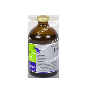 ОписРозчин для інєкційСклад1 мл препаратуТриметоприм .40 мгСульфаметоксазол .200 мгПризначенняІнтертрим комбінований хіміотерапевтичний препарат з широким антимікробним спектром дії проти грампозитивних та грамнегативних бактерій (E.coli, Haemophilus spp., Pasteurella spp., Salmonella spp., Stahylococcus spp., Streptococcus spp. та інші). Активний також до більшості анеробних бактерій. Діючими речовинами препарату є сульфаметоксазол та триметоприм, які у поєднанні виявляють синергічний ефект, поетапно блокуючи синтез пурину у бактеріальній клітині. Сульфаметоксазол (сульфаніламід) є бактеріостатичним антибактеріальним препаратом, який втручається в біосинтез фолієвої кислоти в бактеріальних клітинах. Сульфаметоксазол володіє бактеріостатичною дією проти грампозитивних та грамнегативних мікроорганізмів, а саме: Staphylococcus spp., Streptococcus spp., Corynebacterium spp., Klebsiella spp., Shigella spp., Salmonella spp., Pasteurella spp., Bordetella spp., Haemophilus spp., Proteus spp.. Триметоприм (диамінопіримідин) є інгібітором дигідрофолатредуктази. Триметоприм володіє широким спектром дії проти грампозитивних та грамнегативних мікроорганізмів, а саме: Actinomyces spp., Bacillus anthracis, Bordetella spp., Brucella spp., Clostridia spp., Corynebacterium spp., E. coli, Haemophilus spp., Klebsiella spp., Pasteurella spp., Proteus spp., Salmonella spp., Staphylococcus spp., Streptococcus spp. та Campylobacter spp. Лікування великої рогатої худоби, телят, овець, кіз та свиней при захворюваннях травного каналу, органів дихання та сечовивідних шляхів, що спричинені мікроорганізмами, чутливими до триметоприму та сульфаметоксазолу.ДозуванняВнутрішньомязово у дозі 1 мл препарату на 1020 кг маси тіла двічі на добу протягом 35 діб. Потрібно максимально точно знати массу тіла тварини, для точного розрахунку кількості препарату.Козимають підвищену чутливість до сульфаніламідів, тому призначати та застосовувати препарат для них слід з особливою обережністю.ПротипоказанняПідвищена чутливість до триметоприму та сульфаметоксазолу.ЗастереженняЗабій тварин на мясо, дозволяється через 12 діб, після останнього застосування препарату. Споживання молока в їжу людям дозволяється, відповідно, через 4 доби після останнього застосування препарату. Отримане, до зазначеного терміну, мясо та молоко утилізують або згодовують непродуктивним тваринам, залежно від висновку лікаря ветеринарної медицини.Форма випускуФлакони з темного скла закриті гумовим корком, під алюмінієву обкатку по 100 мл.ЗберіганняПрепарат зберігають в сухому, захищеному від світла місці при температурі 15 C до 25 С. Після першого відбору з флакону, препарат необхідно використати протягом 14 діб, за умов зберігання в темному місці при температурі від 2 C до 8 С.