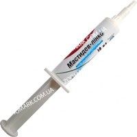 Масляниста суспензія білого кольору із специфічним запахом.Склад:1 мл препарату містить діючі речовини: лінкоміцину гідрохлорид - 20 мг, сульфатіазол натрію - 40 мг, триметоприм - 8 мг, преднізолон - 1 мг допоміжні речовини: пенетрант, формоутворювач - до 1 мл.Фармакологічні властивості:Мастидев-лінко - комбінований протимікробний препарат. Комбінація складників препарату володіє ефективною дією на грампозитивні і грамнегативні бактерії, як Streptococus agalactiae, Streptococus dysgalactiae, Streptococus uberis, Staphilococus aureus. Сульфатіазол натрію - володіє високою антимікробною активністю по відношенню до стрептококів, менінгококів, кишкової палички, сальмонел, пастерел і інших мікроорганізмів. Преднізолон це дегідрований аналог гідрокортизону, що володіє протизапальною, десенсибілізуючою та протиалергічною дією. Триметоприм - синтетичний антибактеріальний препарат, що по хімічній будові є похідним діамінопірімідину. Триметоприм має бактеріостатичну дію. По механізму дії препарат відноситься до інгібіторів дигідрофолатредуктази бактерій та найпростіших, порушуючи синтез фолієвої кислоти. До препарату чутливими є наступні збудники: стафілококи, стрептококи, Escherichia coli, сальмонели, Proteus spp., Enterobacter spp., а також деякі найпростіші - токсоплазми. Нечутливими до препарату є Enterococcus spp., Pseudomonas spp. та більшість анаеробних бактерій. Преднізолон, стимулюючи стероїдні рецептори, індукує утворення особливого класу білків ліпокортінів, що володіють протинабряковою активністю, сприяє зниженню проникності капілярів та знижує активність гіалуронідази. Препарат за короткий час пригнічує запальну реакцію та знімає набряк молочної залози. Пенетрант, який входить до складу препарату, посилює проникнення діючих речовин у епітеліоцити молочної залози та клітини мікроорганізмів. Наповнювач володіє гіпертонічними властивостями, що призводить до видалення ексудату із зон запалення. У сукупності складові препарату зумовлюють виражену антисептичну, протизапальну, бактеріостатичну, тонізуючу, помякшувальну, місцево знеболюючу, регенеруючу дії, що сприяє швидкому лікуванню маститів.Застосування:Застосовують для лікування субклінічних і клінічних форм маститів бактеріальної етіології, викликаних чутливими до складових препарату мікроорганізмами, у корів в період лактації.Дозування:Перед введенням препарату уражену долю вимені ретельно здоюють та проводять асептичну обробку дійки. Попередньо підігрітий до 35-37 С і збовтаний до отримання однорідної суміші препарат повільно вводять в молочний канал безпосередньо з шприца-туби або за допомогою молочного катетеру і шприца у дозі 10 мл. Після введення проводять легкий масаж долі вимені знизу доверху. Повторні введення проводять через 12-24 години впродовж 3-5 діб.Протипоказання:Не застосовувати тваринам з індивідуальною підвищеною чутливістю до складників препарату.Каренція:Під час лікування препаратом та протягом 48 годин після його останнього введення молоко з ураженої долі вимені здоюють в окремий посуд та утилізують. Забій тварин на мясо дозволяється через 3 доби після останнього введення препарату. Отримане до зазначеного терміну молоко та мясо згодовують непродуктивним тваринам або утилізують (залежно від висновку лікаря ветеринарної медицини).Форма випуску:Шприци інтрамамарні (шприц-туба) по 10 мл.Зберігання:Сухе