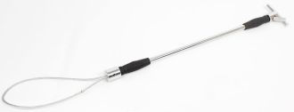 Петля для вилову тварин L з гумовими вставкамиФіксатор являє собою петлю, за допомогою якої фіксується голова тварини під час проведення різних процедур, а також перегону та забоюФіксатор виготовлений із міцної нікелевоїсталі, що забезпечує тривалий термін експлуатації. Обладнаний зручною довгою ручкою.Відмітною особливістю цього фіксатора є гумові вставки, що робить інструмент ще безпечнішим.Довжина ручки: 600 мм.Петля виготовлена з товстого сталевого каната.Пристрій обладнаний замкомДовжина ручки 600 мм.Загальна довжина 950 мм.Використовувати цей прилад дуже просто досить накинути петлю на шию тварини та трохи затягнути, змушуючи тварину змиритися й дотримуватися ваших вказівок.