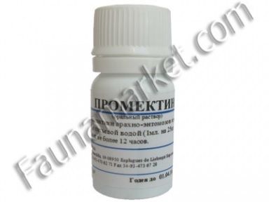 Опис:Оральний розчин.Склад:100 мл препарату містять діюча речовина івермектин-1г.Фармакологічна дія:ATCvet QP54AA01Діючою речовиною препарату є івермектин, що належить до сполук, які продукуються мікроорганізмами групи Streptomices avermitis.Препарат Промектин оральний має виражену дію на ендо-і ектопаразитів домашньої птиці.Механізм дії на організм паразита полягає в тому, що івермектин стимулює виділення нейромедіатора гальмування гамма-аміномасляної кислоти (ГАМК), в результаті чого відбувається блокада передачі імпульсу між вставочними і руховими возбудительними нейронами черевного стовбура паразита, а це призводить до поразки і загибелі паразита.Застосування:Препарат рекомендується застосовувати ремонтному молодняку курей:- Для лікування захворювань, спричинених круглими хробаками: Ascaridia spp, Capillaria spp, і Strongyloides spp- Для лікування та профілактики захворювань, викликаних ектопаразитами: кліщами (Dermatnyssus gallinea, Ornithodoros sylviarum), вошами (Menacanthus stramineus, Menopon gallinea).Дозування:Препарат рекомендується поїти ремонтному молодняку курей з питною водою. Розраховану кількість препарату розводять в одній четвертій частині питної води, яку отримує птах протягом дня. Рекомендується поїти розчинений у воді препарат вранці, і перед випаиванием припинити на дві години подачу питної воду.Рекомендовані дози препарату:- Проти ендопаразитів: 1 мл на 25 кг маси тіла, що еквівалентно 0,4 мг івермектину кг м. т.,При необхідності лікування препаратом повторюють через 15 днів.- Проти ектопаразитів: 1 мл на 25 кг маси тіла, що еквівалентно 0,4 мг івермектину кг м. т.протягом двох днів, при необхідності лікування препаратом повторюють через 15 днів.Протипоказання:Івермектин відноситься до безпечних речовин і при застосуванні препарату у рекомендованих дозах клінічних ознак передозування не спостерігається. Однак у випадках передозування слід застосовувати симптоматичне лікування.Застереження:Період виведення становить: мясо - 8 діб.Не застосовувати препарат за 20 днів до початку періоду несучості.Форма випуску:Поліетиленові флакони герметично закриті пробкою по 100 мл, 1 і 5 л.Зберігання:Зберігати препарат в закритій заводській упаковці в сухому, провітрюваному, захищеному від прямих сонячних променів місці при температурі від 5 до 25 С.Термін придатності:2 роки.