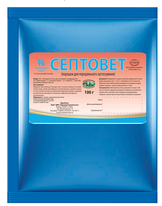 Септовет-антибактеріальний препарат для тварин 500 г УЗВППостач