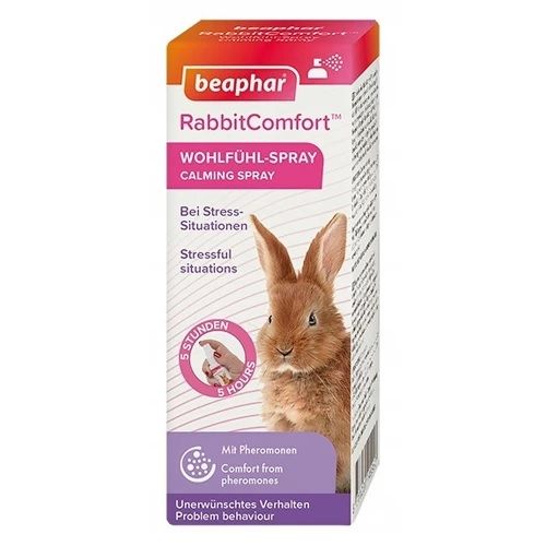 Спрей Беафар RabbitComfort Calming Spray для заспокоєння кроликів з феромонами 30 млФеромон, що використовується в засобі Беафар РебітКомфорт, є ефективним рішенням, що допомагає заспокоїти кроликів при стресових ситуаціях, таких як: гучні звуки, перестановка меблів, переїзд або відвідування ветеринару. А також зменшити прояв їхньої небажаної поведінки: ховатися, виявляти агресивну поведінку по відношенню до людей або інших кроликів, відмовлятися від їжі.Заспокійливий Феромон Кролов природним чином виробляється самкою, коли вона годує своїх новонароджених кроленят, і є своєрідним звязком між кролицею та її кроленятами. У заспокійливому спреї Беафар РебітКомфорт використовується аналог цього феромону, він транслює кроликам тривале та заспокійливе усвідомлення того, що це безпечна та спокійна зона для них. Це також може бути дуже корисним, коли в будинку зявляється новий кролик. Заспокійливий спрей Беафар РебітКомфорт підходить для кроликів усіх порід та вікових груп. Він не вплине на інших тварин у домогосподарстві і не чинить седативної дії, і його можна використовувати разом з будь-якими лікарськими засобами, якщо такі застосовуються тварині.Вказівки з безпеки: Легкозаймиста рідина та випаровування. Викликає серйозне роздратування очей. Може спричинити сонливість або запаморочення. Зберігати у недоступному для дітей місці. Перед використанням прочитайте етикетку. Тримайте подалі від тепла, гарячих поверхонь, іскор, відкритого вогню та інших джерел займання. Курити під час роботи із засобом заборонено. Зберігати ємність із засобом щільно закритим. Якщо подразнення очей не відбувається, зверніться до лікаря. Зберігати в добре провітрюваному та прохолодному місці.Склад:Аналог Заспокійливого Феромона Кролов 2 ізопропіловий спирт 30 мл.Дозування:Флакона обємом 30 мл вистачає приблизно на 214 натискань. Використовуйте +- 9 натискання на одне застосування. Ефект заспокійливого спрею Беафар РебітКомфорт триває до 5 годин.Спосіб використання:Спрей можна використовувати на будь-який предмет із оточення вашого кролика. Можна повторно використовувати спрей так часто, як це потрібно. Забороняється застосовувати спрей безпосередньо на тварину Спосіб застосування: - Розпорошіть спрей на будь-який предмет з оточення вашого кролика, щоб він почував себе як удома. Якщо плануєте познайомити двох кроликів, створіть нейтральний простір та нанесіть спрей за 15 хвилин до цієї події. - Обприскуйте клітини та перенесення за 15 хвилин до використання. Не можна використовувати спрей, поки кролик перебуває всередині.Функції:призначення: заспокійливетип засобу: спрейтварина: для кроликівобєм: 30 млтварина: для кроликівкраїна виробник: Нідерланди