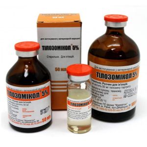 Опис Тилозомикол 5Склад 1 мл препарату містить діючу речовину: тілозоміну тартрат - 50мг.Допоміжні речовини: спирт бензиловий, пропіленгліколь, вода для інєкцій.Фармакологічні властивості Тилозин - антибіотик з групи макролідів.Препарат активний відносно грампозитивних мікроорганізмів (Actinomycos spp., Bacillus antracis., Clostridium spp., Corynebacterium spp., Erysipelothrix rhusiopathiae., Streptococcus spp., Staphylococcus spp., Diplococcus spp.), Грамнегативних мікроорганізмів (Pasteurella multocida, Salmonella spp., Actinobacillus spp., Fusobacterium spp., Bordetеlla bronchiseptica, Leptospira spp . Haemophilus spp., Bacteroides nodosus, Moraxella spp., Proteus mirabilis), а також хламідій (Chlamidia spp.), мікоплазм (Micoplasma spp.). Дія тілозоміну полягає в його звязування з 50S рибосомальною субодиницею чутливих до препарату бактерій, що призводить до пригнічення синтезу поліпептидів.