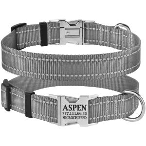 Нейлоновий нашийник зі світловідбиттям для собак ТМ BronzeDog легкий, міцний та надійний. Він виконаний із матеріалів найвищої якості. Високоміцний нейлон, з якого виготовлений нашийник, не втрачає колір при пранні та не вигоряє на сонці. Нашийник виконаний із вплетенням світловідбиваючої нитки та укомплектований міцною металевою пряжкою з можливістю нанесення гравіювання.На пряжці можна нагрівати будь-яку інформацію, наприклад: кличка домашньої тварини, контактні дані, адреса, номер мікрочіпа тощо. На нашийнику розміру S бажано розміщувати не більше 2 рядків гравіювання. Текст наноситься за допомогою лазера, тому з часом він не стирається і не тьмяніє. Цей нашийник мякий на дотик, гнучкий, не боїться води, практичний і невибагливий у догляді.