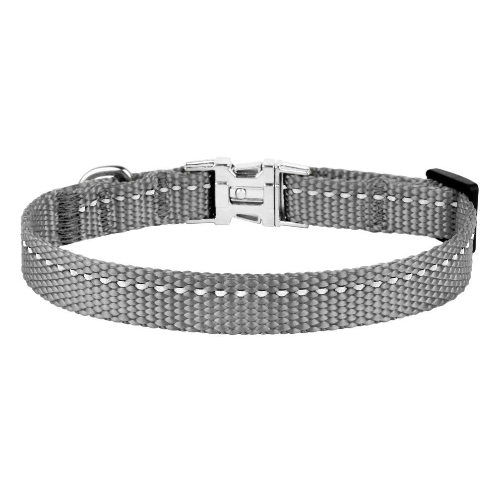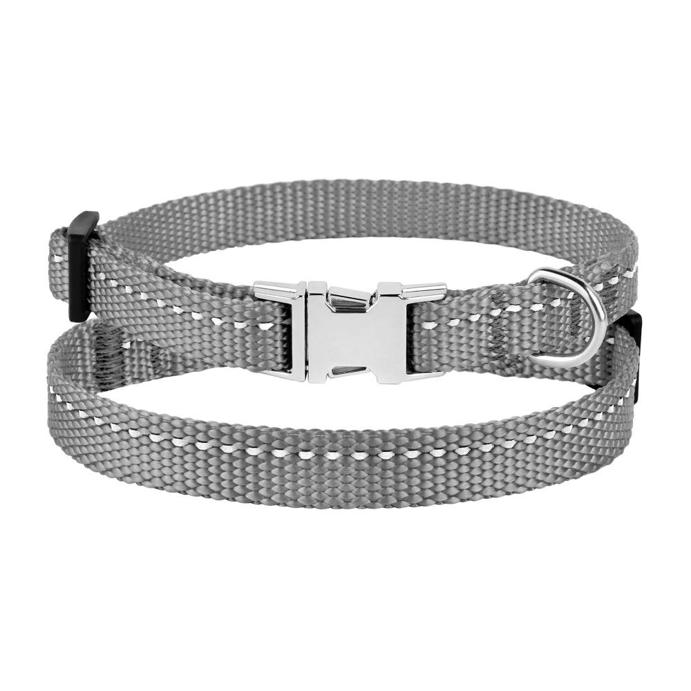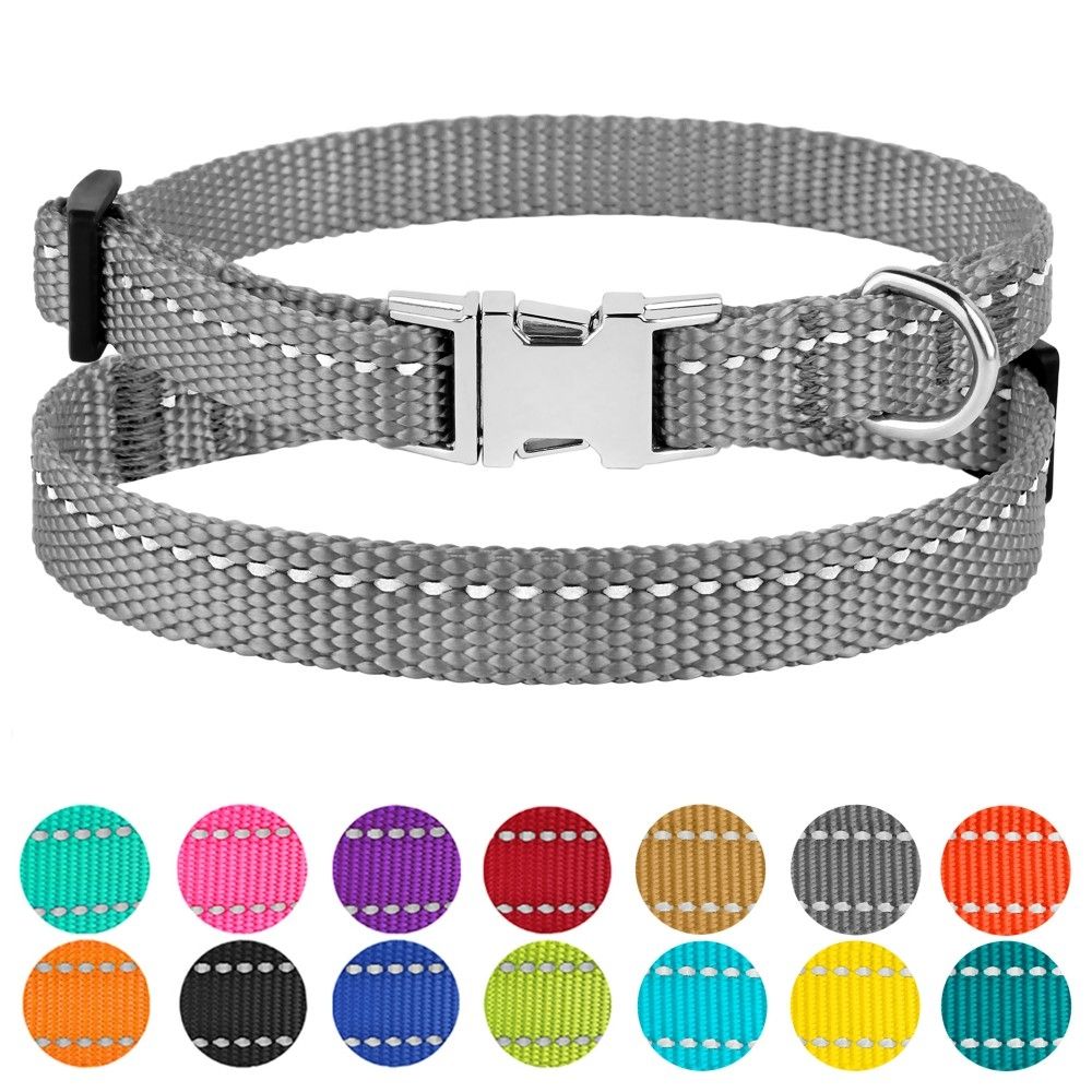 Нейлоновий нашийник зі світловідбиттям для собак дрібних порід ТМ BronzeDog легкий, міцний та надійний. Він виконаний із матеріалів найвищої якості. Високоміцний нейлон, з якого виготовлений нашийник, не втрачає колір під час прання і не вигоряє на сонці. Нашийник виконаний з вплетенням світловідбиваючої нитки та укомплектований міцною металевою пряжкою. Цей нашийник мякий на дотик, гнучкий, не боїться води, практичний і невибагливий у догляді.