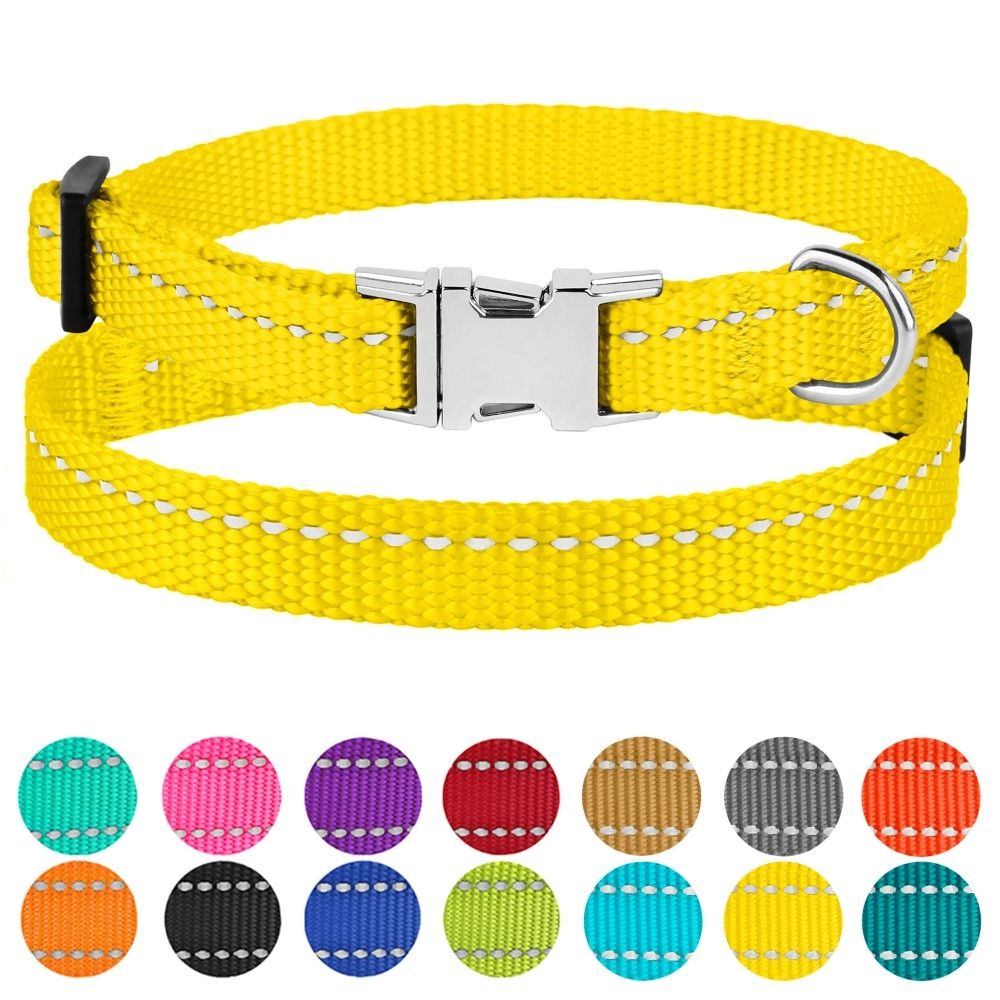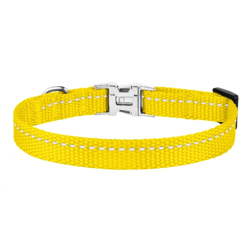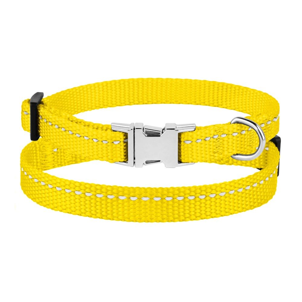 Нейлоновий нашийник з світловідбивання для собак дрібних порід ТМ BronzeDog легкий, міцний і надійний. Він виконаний з матеріалів найвищої якості. Високоміцний нейлон, з якого виготовлений нашийник, не втрачає колір під час прання і не вигоряє на сонці. Нашийник виконаний з вплетенням світловідбиваючої нитки і укомплектований міцною металевою пряжкою. Цей нашийник мякий на дотик, гнучкий, не боїться води, практичний і невибагливий у догляді.