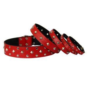 Нашийник для собак Шкіряний з прикрасами, червоний 44-60 см