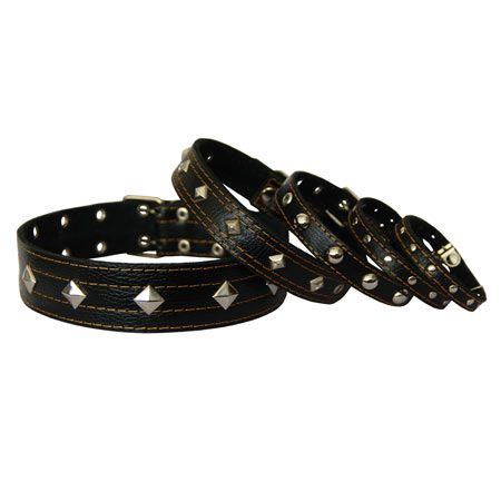 Нашийник для собак Шкіряний з прикрасами, чорний 20-38 см